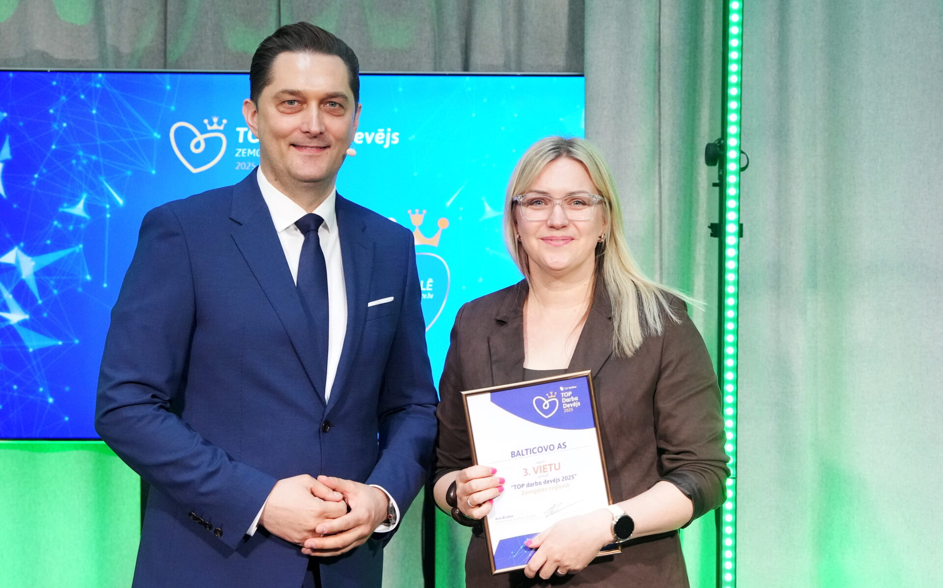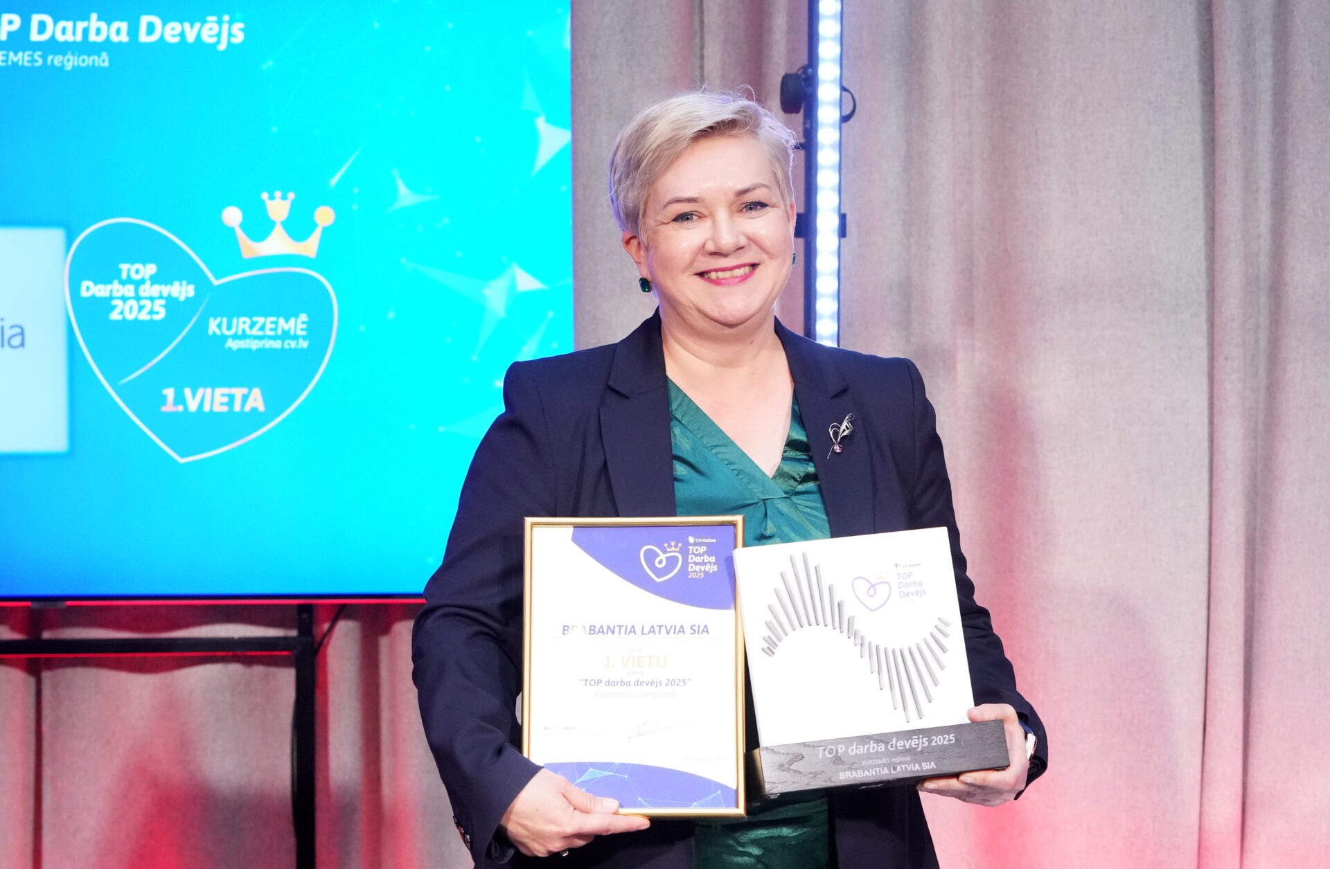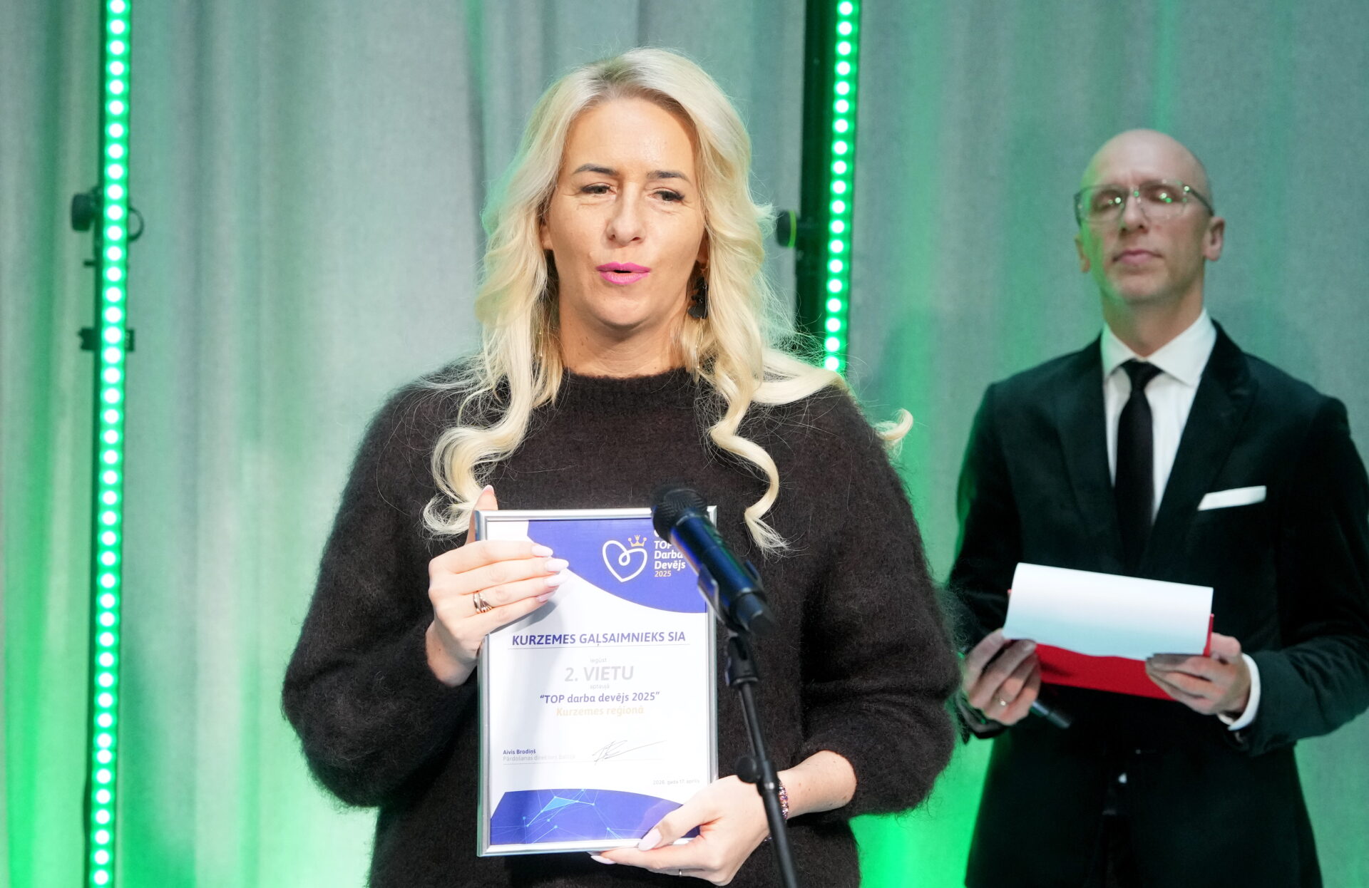 For 2025, SIA “BRABANTIA LATVIA” was recognized as the best workplace in the Kurzeme region for the first time, receiving 7.3% of the votes. Second place was awarded to the meat processing company SIA “Kurzemes Gaļsaimnieks”, with support from 6.1% of respondents. Third place, entering the top three for the third time, was taken by the food retail company AS “DIĀNA”, receiving support from 6% of respondents.
