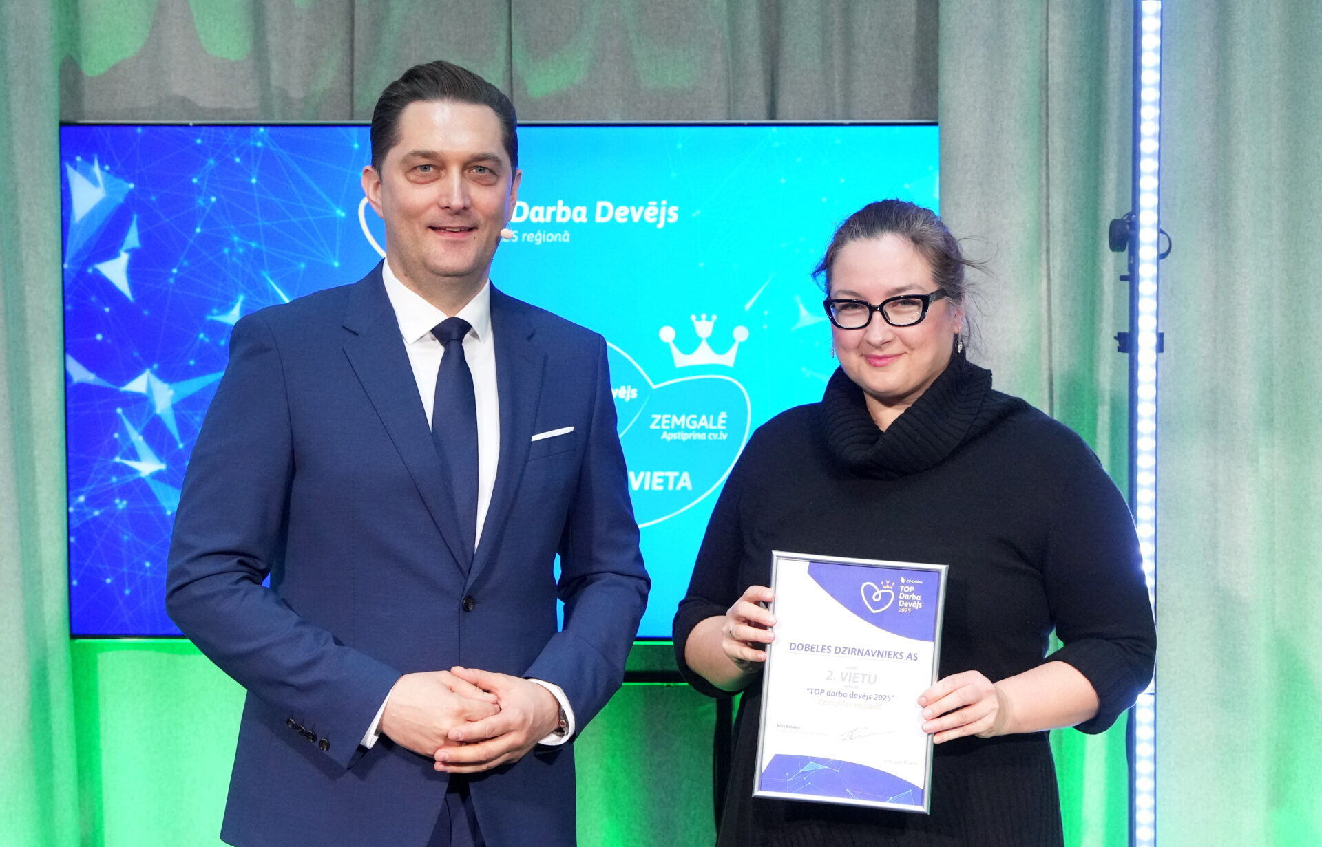 For 2025, the domestic fuel retail company AS “Virši-A” was recognized as the best workplace in the Zemgale region for the third consecutive year, receiving 17.6% of respondents’ votes. Second place was retained by the food production company AS “Dobeles dzirnavnieks”, with 13% support. Meanwhile, third place was secured by another food production company, AS “Balticovo”, which received votes from 10% of survey participants.